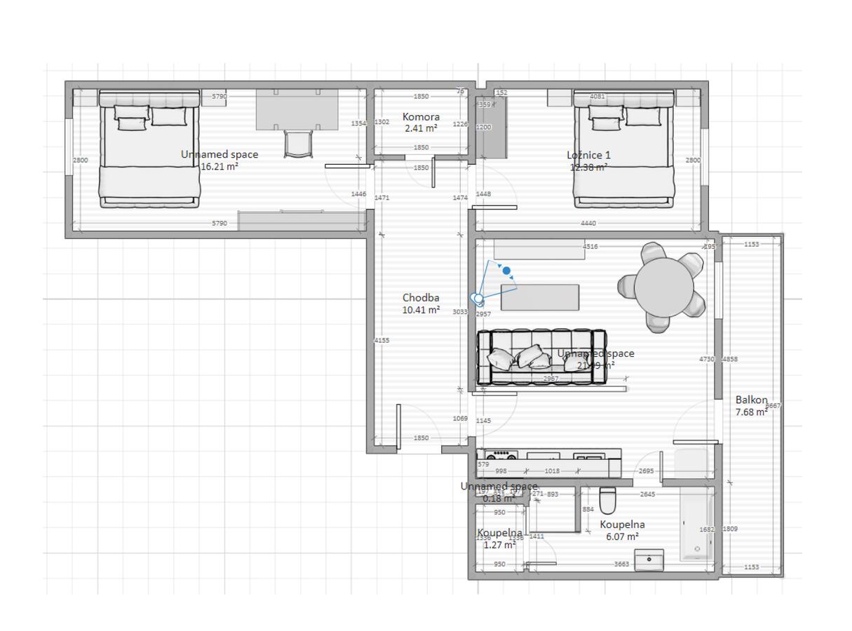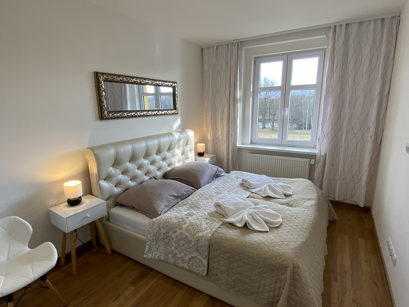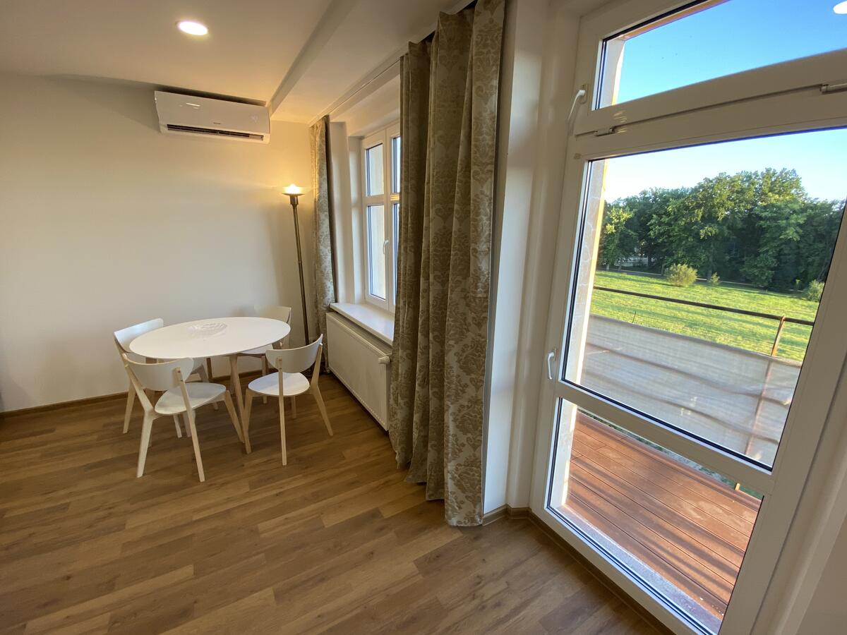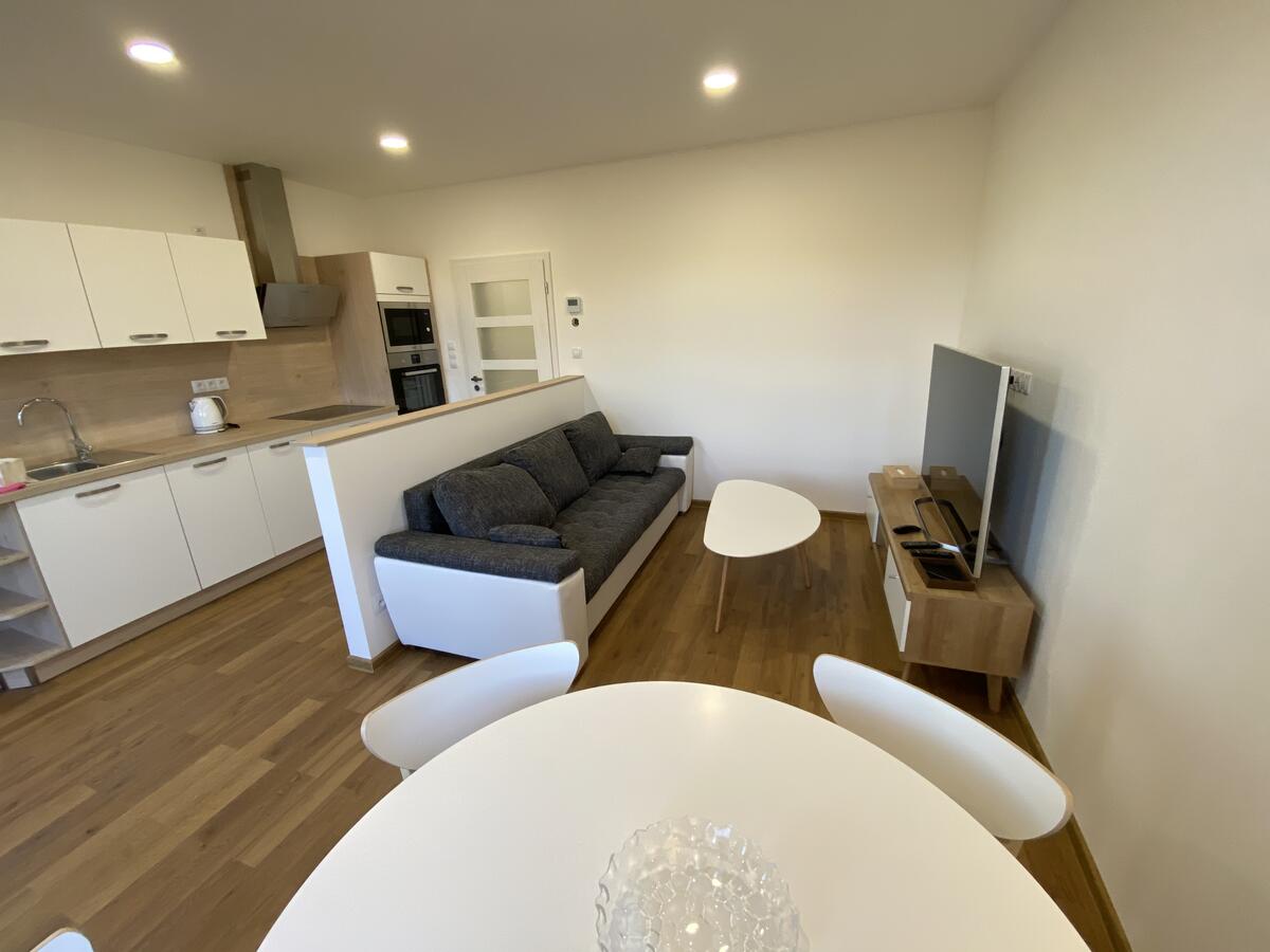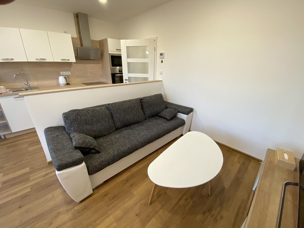 Dvě samostatné ložnice a prostorný obývací pokoj s rozkládací pohovkou. Ubytuje se tak pohodlně až 6 osob.