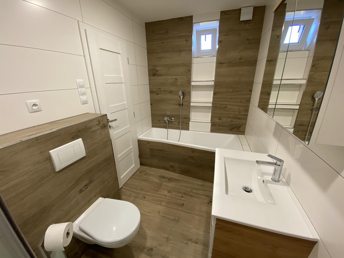 Prostorná koupelna s vanou i sprchou